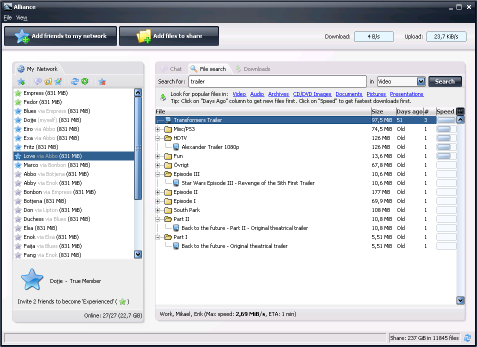 Well, those guys basically had the same idea.... but they actually implemented it. Alliance (Win, Mac, Linux) allows you and your friends and colleagues to build up an own private Peer 2 Peer Network. Guess what: I have something 2 share with you. If you are interested: my nick is effzehn.